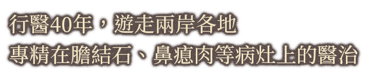 曾榮獲中華民國傑出中醫師華陀金像獎的江合春醫師,行醫40年,遊走兩岸各地,是首將「分娩排石法」引進國內的中醫師,讓許多膽結石病患可以免除開刀之苦。